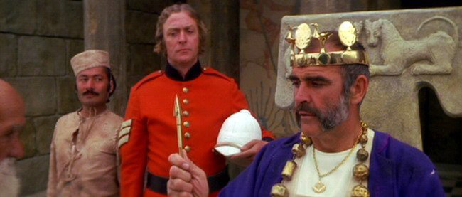 En una escena de la magnífica película de John Huston El hombre que pudo reinar los miembros de una tribu de Kafiristán, una remota región afgana, preguntan a los dos soldados ingleses -Sean Connery y Michael Caine-, llegados allí con el propósito de medrar, si son dioses, a lo que éstos responden: No somos dioses, pero somos ingleses, que es casi lo mismo. Desconozco si la frase fue incluida por los guionistas de la película o si ya aparece en el relato de Kipling en el que está basada, aunque esto último no sería de extrañar dado Kipling fue, a la par que un magnífico escritor, un defensor a ultranza del colonialismo británico.