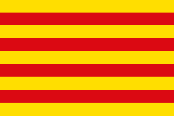 Ya en España nos encontramos con las banderas de las cuatro autonomías correspondientes a los reinos de la antigua Corona de Aragón, Aragón, Cataluña, Valencia y Baleares que, con algunas variantes, están basadas en el estandarte de sus monarcas, una sucesión alternada de cinco barras horizontales amarillas y cuatro rojas. Asimismo las heráldicas provinciales y locales de estas cuatro regiones están muy influidas por este estandarte, al igual que el Rosellón francés.