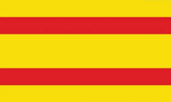 Más parecida a la española era otra bandera también desaparecida, la de Vietnam del Sur, formada por tres estrechas bandas rojas horizontales sobre un fondo amarillo.