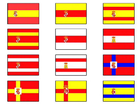 Hay quien afirma que Carlos III consideró también el hecho de que ambos colores eran tradicionales en la heráldica de los reinos españoles, el rojo en la castellana y la navarra y, sobre todo, la combinación alternada de rojo y amarillo en la aragonesa. Nada puedo afirmar al respecto, aunque lo cierto es que seis de los doce modelos presentados por Valdés al rey presentaban diferentes combinaciones de rojo y amarillo, frente a cuatro de rojo y blanco, una de rojo y azul y otra de azul y amarillo.