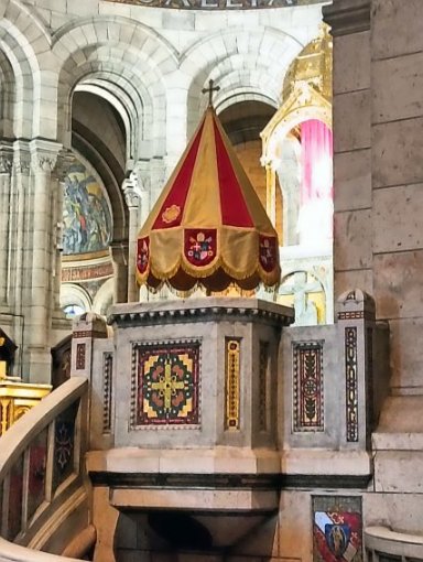 Fuera del ámbito político nos encontramos con una combinación de franjas rojas y doradas en el conopeo -también llamado umbráculo- papal, en su origen la sombrilla usada a modo de palio por los pontífices y en la actualidad el símbolo identificativo de las iglesias que ostentan el título de basílica. Asimismo el conopeo forma parte del escudo heráldico papal en los períodos de sede vacante comprendidos entre el fallecimiento de un papa y la elección de su sucesor.